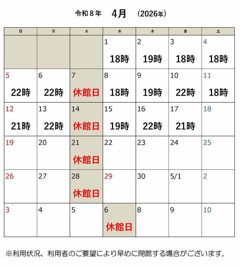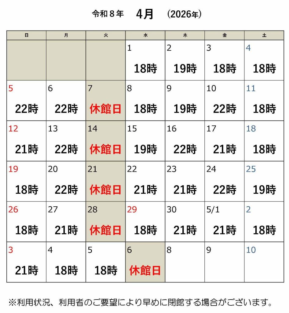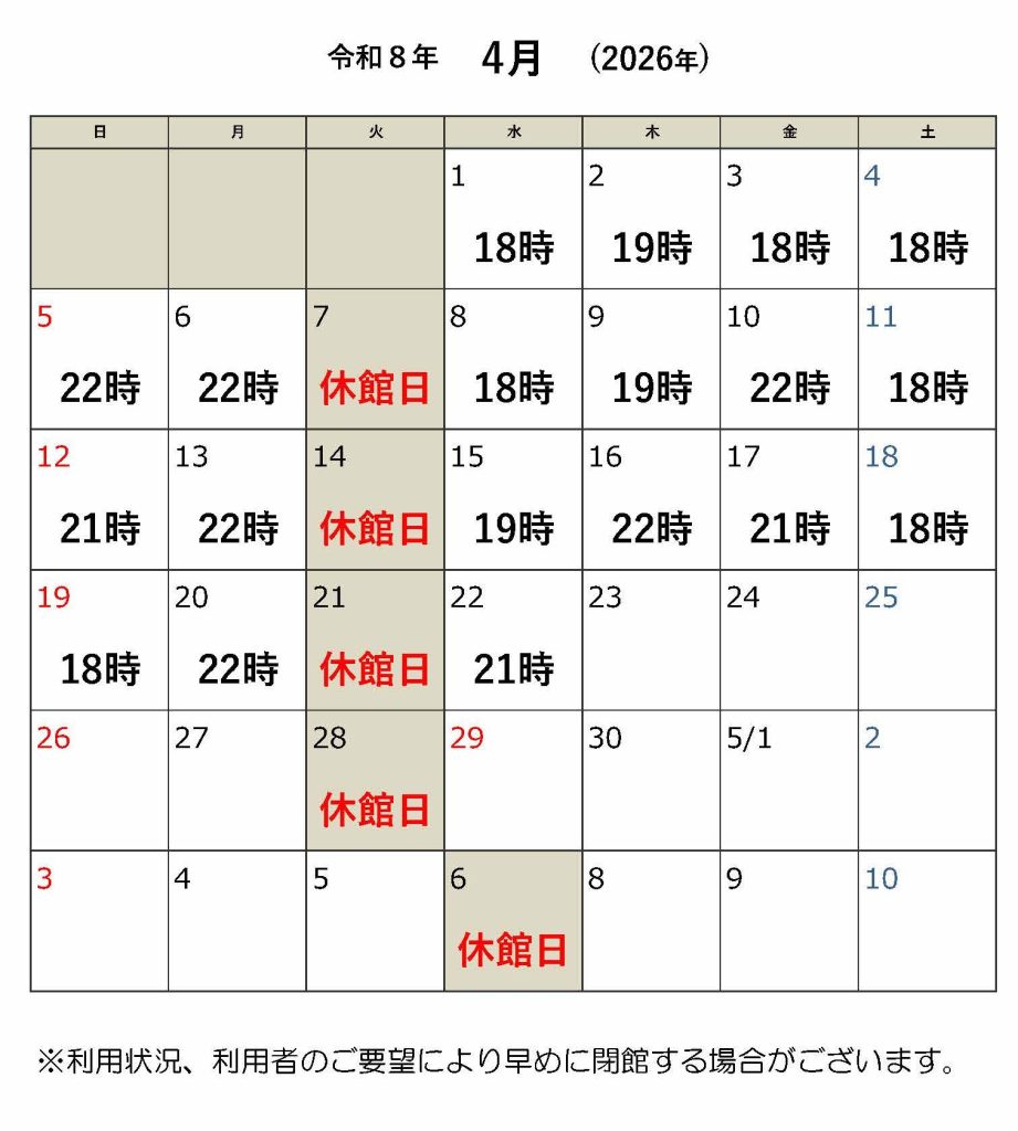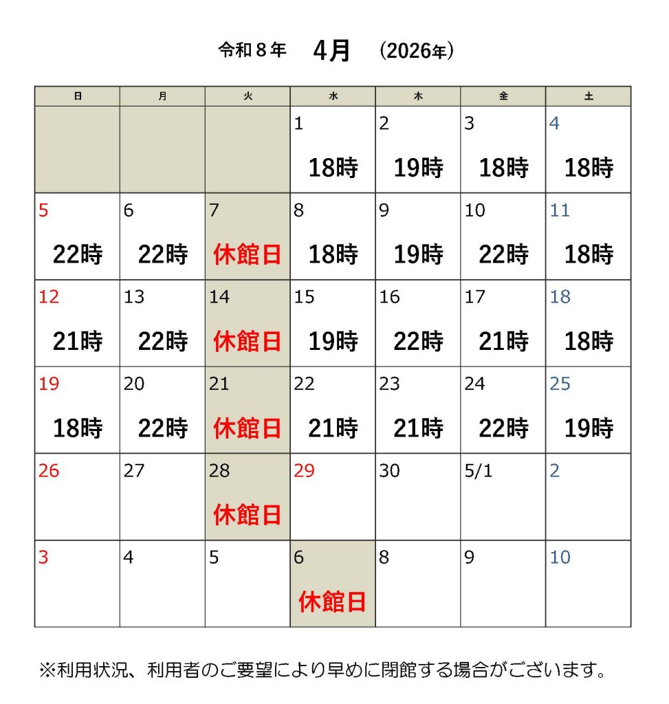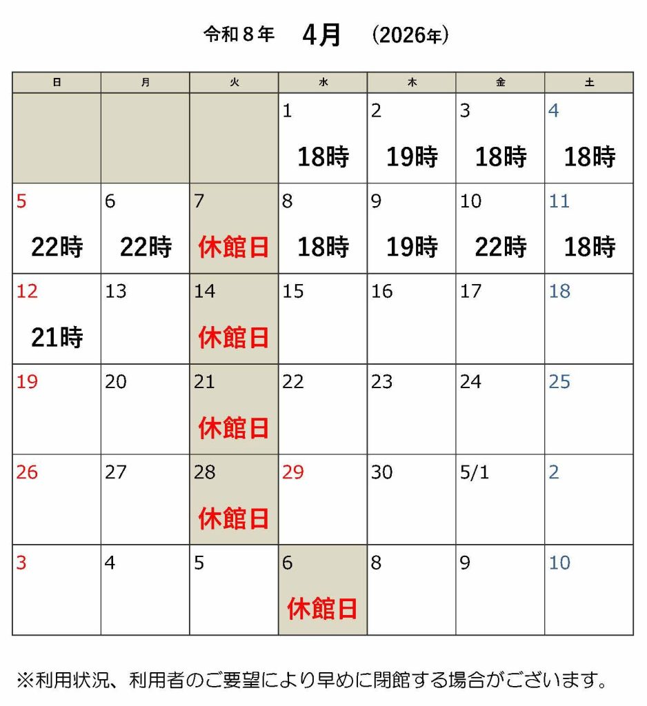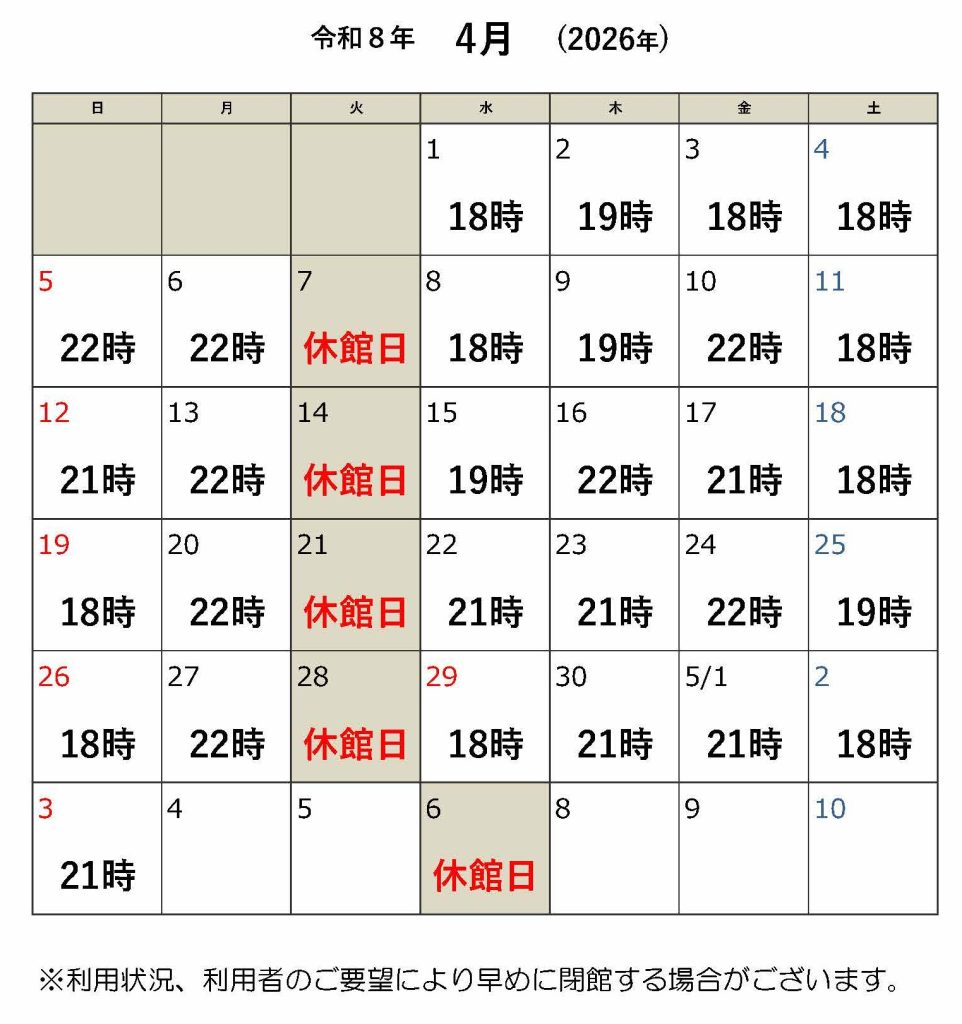 6/30(月)は14時閉館となります。