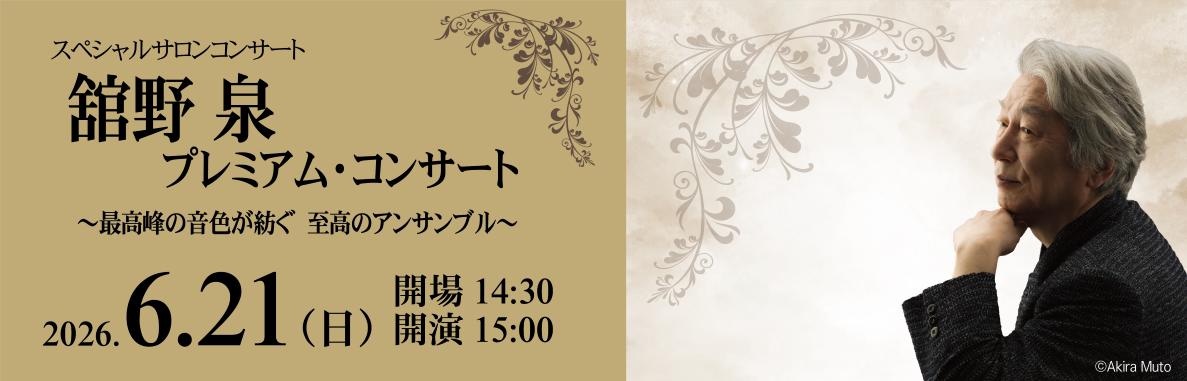 6/21(日) スペシャルサロンコンサート 舘野泉プレミアム・コンサート ~最高峰の音色が紡ぐ 至高のアンサンブル~