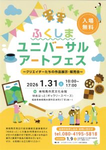 開 催 日 令和8年1月31日(土) 時 間 10:00~17:00会 場 ギャラリー入 場 無料お問合せ ふくしまインクルーシブアート実行委員会 TEL : 080-4195-5818