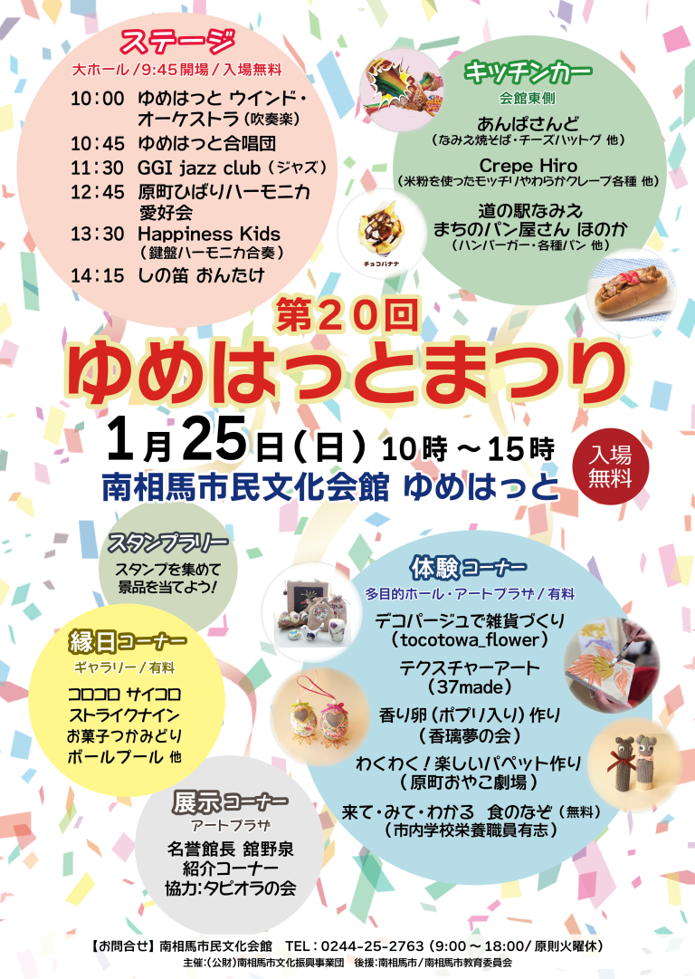 ゆめはっと事業係 0244-25-2763(9:00~17:00)原則火曜日休館